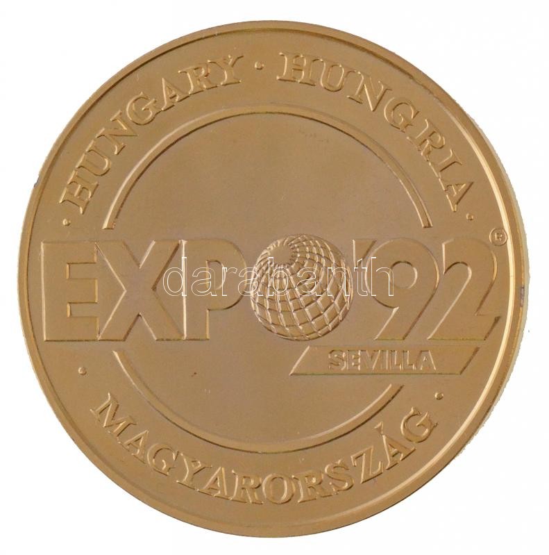 Lebó Ferenc (1960-) 1992. "Európában, Európáért / Magyarország - Sevilla Expo 1992" aranyozott emlékérem, eredeti tokban (42,5mm) T:1 (eredetileg PP)
