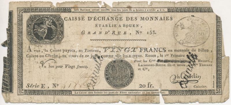 Franciaország / Rouen 1797-1803. 20Fr "annulé (érvénytelen)" felülbélyegzéssel T:IV