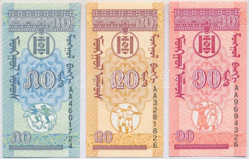 Mongolia 1993. 10 Mongo + 20 Mongo + 50 Mongo C:UNC Krause KM#49 KM#50 KM#51