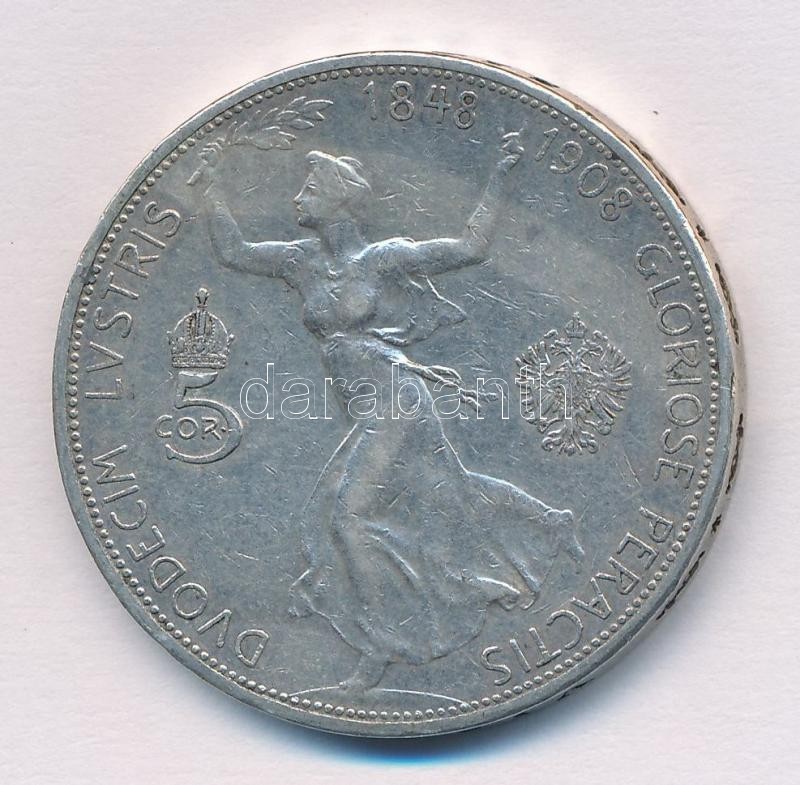 https://www.darabanth.com/en/377-Online-auction/377.0/Numismatics/Worldwide-silver-and-metal-coins~1500014/Ausztria-1908-5K-Ag-Ferenc-Jozsef-Jubileum-T2-Austria-1908-5-Corona-Ag-Franz-Joseph-Jubi~II2218649