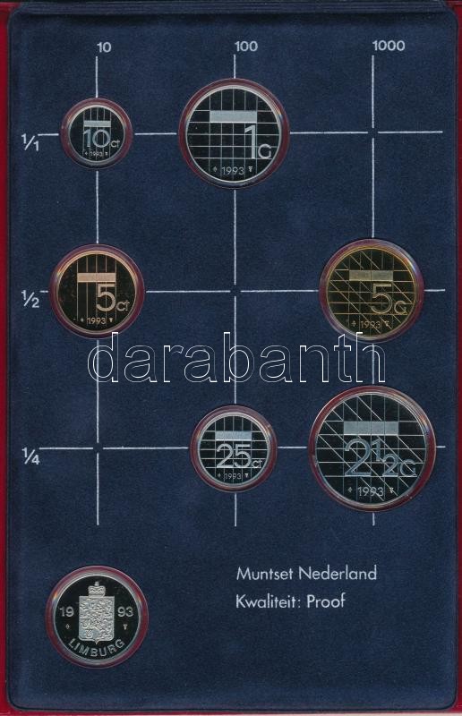 Netherlands 1993. 10 Cent - 5 Gulden (6xdiff) + "Limburg / 'Srijks Mun" jeton in original case C:PP