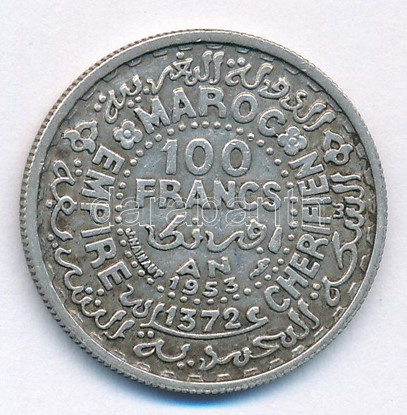 https://www.darabanth.com/en/377-Online-auction/377.0/Numismatics/Worldwide-silver-and-metal-coins~1500014/Marokko-1953-100Fr-Ag-T2--Morocco-1953-100-Francs-Ag-CXF--Krause-Y2352~II2149568