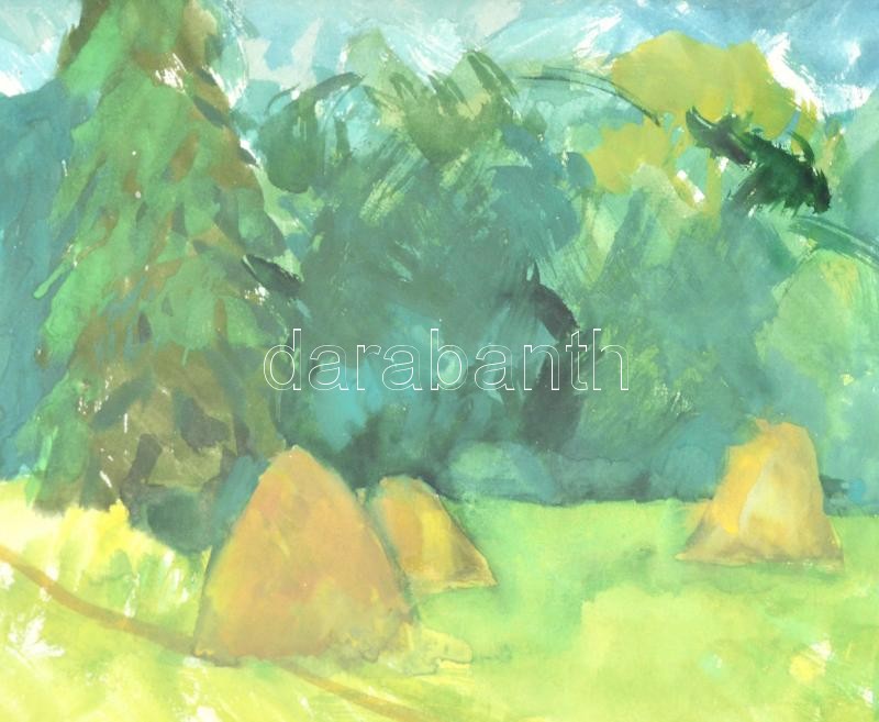 Balla jelzéssel: Zöldellő táj. Akvarell, papír. Üvegezett, kissé sérült keretben. 24×34 cm