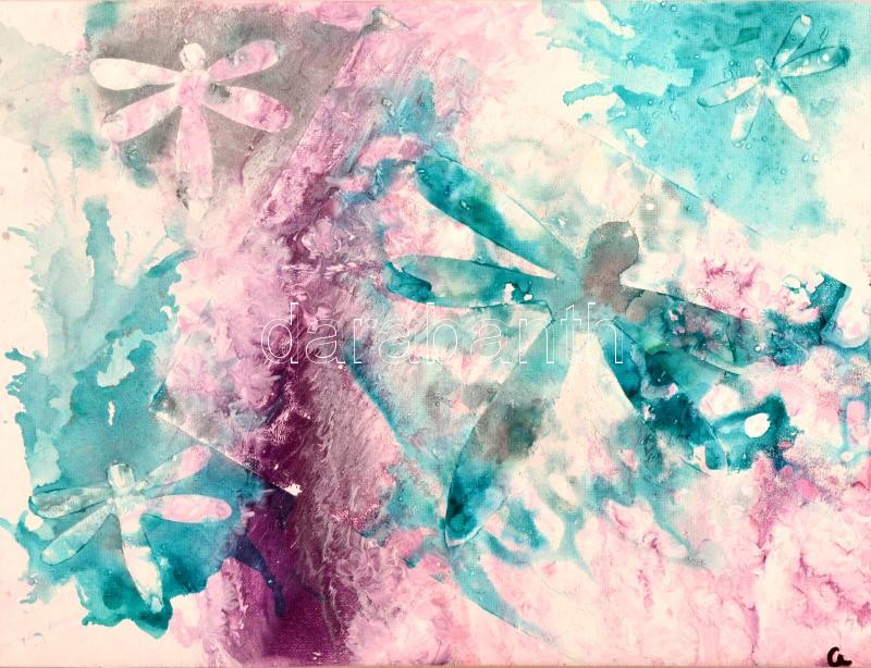 Csepregi Anita (1985-): Szitakötő II. Akril - vegyes technika, farost,...