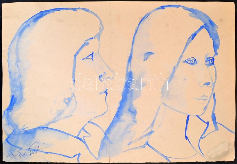 Farkas jelzéssel: Portrék. Akvarell, papír, hajtásnyommal, jobb alsó s...