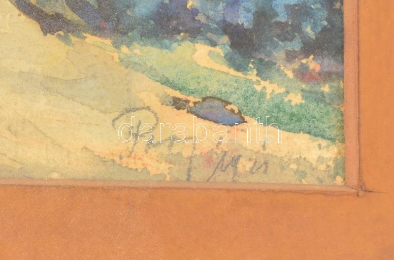 Olvashatatlan jelzéssel: Ház sarok. Akvarell, papír, üvegezett keretben, 18×29 cm