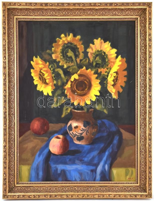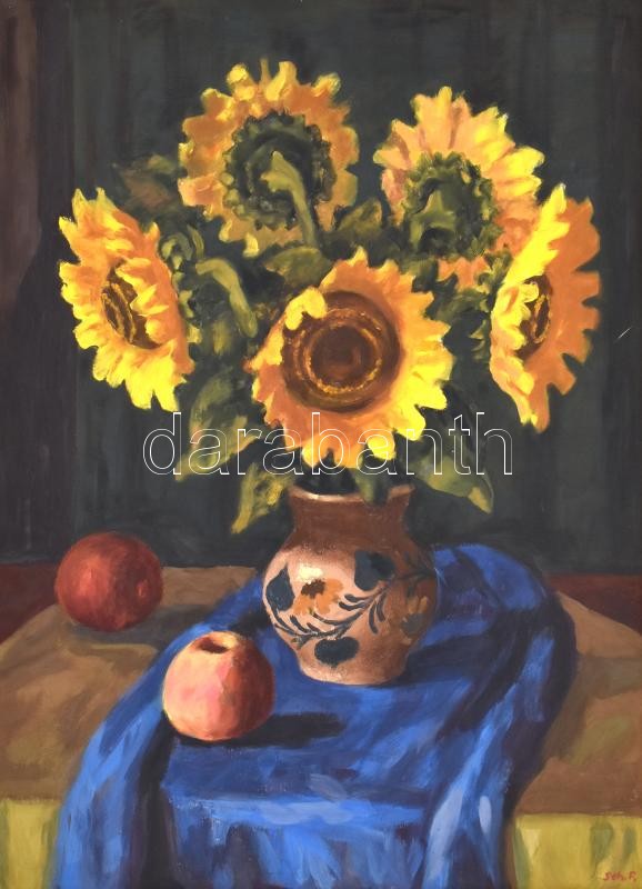 Schey Ferenc (1925-1997): Virágcsendélet. Olaj, farost, jelzett. Dísze...
