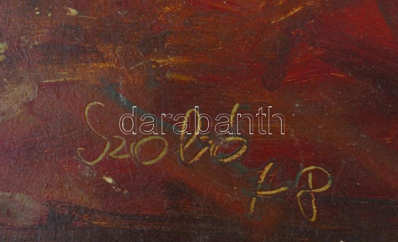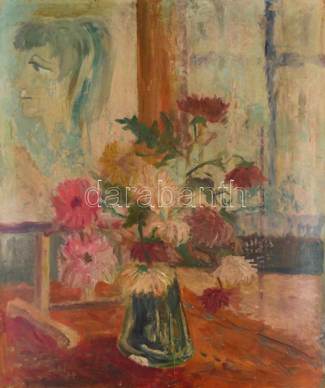 Szabó 78 jelzéssel: Csendélet női arccal. Olaj, karton, 73×61 cm