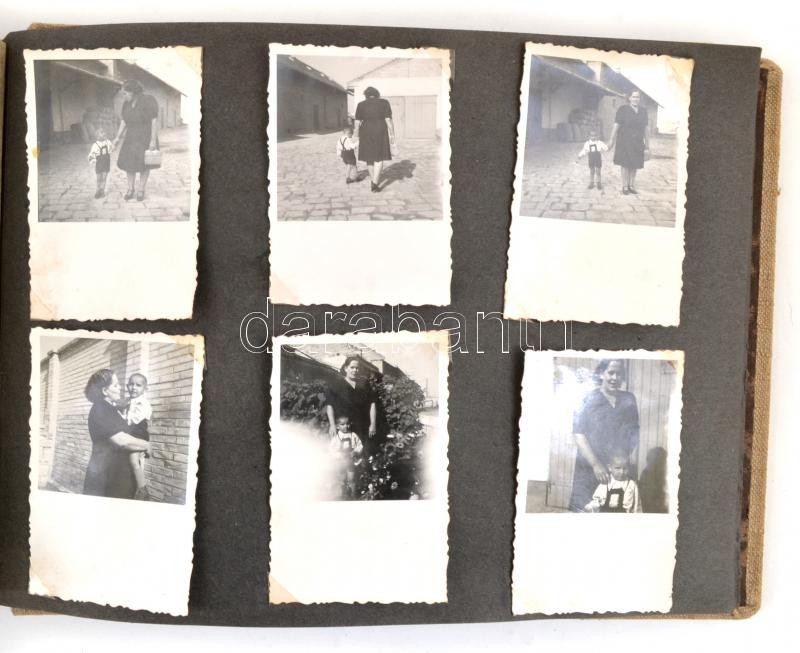cca 1940 Vászon borítású családi fotóalbum, főként gyerekekről, 151 db képpel, 5,5x5,5 és 16x22 cm közötti méretekben