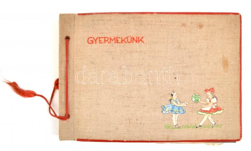 cca 1940 Vászon borítású családi fotóalbum, főként gyerekekről, 151 db...