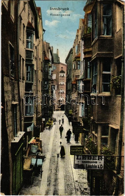Innsbruck, Riesengasse / street, shops + "K.u.k. Improvisierte Te...