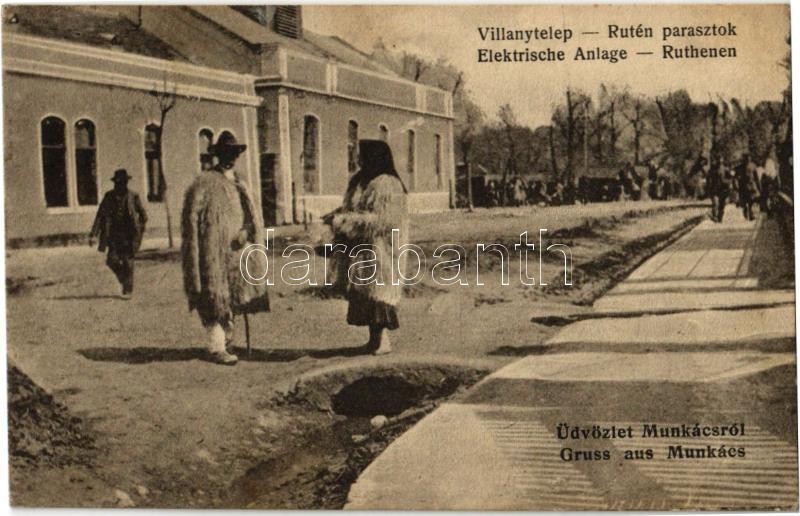 Munkács, Mukacheve, Mukacevo; Villanytelep, rutén parasztok. Reklám kiadása / power station, Ruthenian (Rusyn) folklore