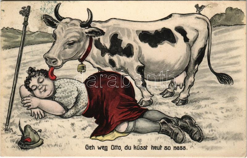 1913 Geh weg Otto, du küsst heut so nass / Humour with woman and cow. ...