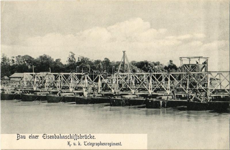 Cs. és kir. távirati ezred vasúti hajóhíd építése közben / Bau einer E... https://www.darabanth.com/en/377-Online-auction/377.0/Postcards/Militaria~2000082/Cs-es-kir-tavirati-ezred-vasuti-hajohid-epitese-kozben-Bau-einer-Eisenbahnschiffsbruck~II2122370