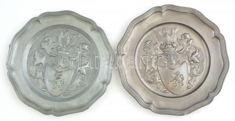 2 db címeres ón tányér d:23 cm + vadász jelenetes pohár 10 cm
