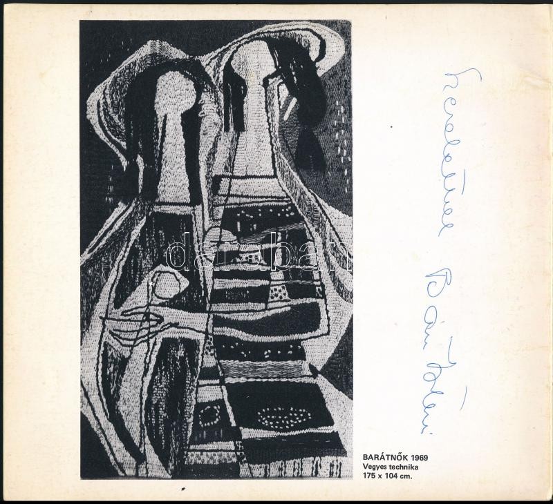 Vegyes dedikált katalógus tétel, 3 db: 1970 Bán István textilművész kiállítási katalógusa. Bp., 1970, Csók István Galéria. A művész, Bán István (1922-1984) által dedikált.; 1971 Perczel Erzsébet kiállítási katalógusa. Bp., 1971., Ernst Múzeum. A művész, Perczel Erzsébet (1913-1993) által dedikált.; 1976 Preiser Klára textiltervező iparművész kiállítási katalógusa. Bp., 1976., Műcsarnok. A művész, Preiser Klára (1910-2003) által dedikált.;