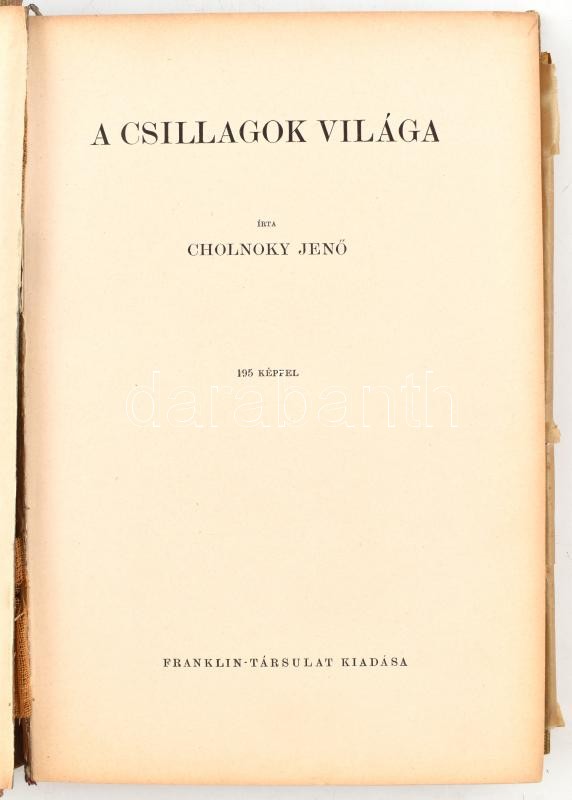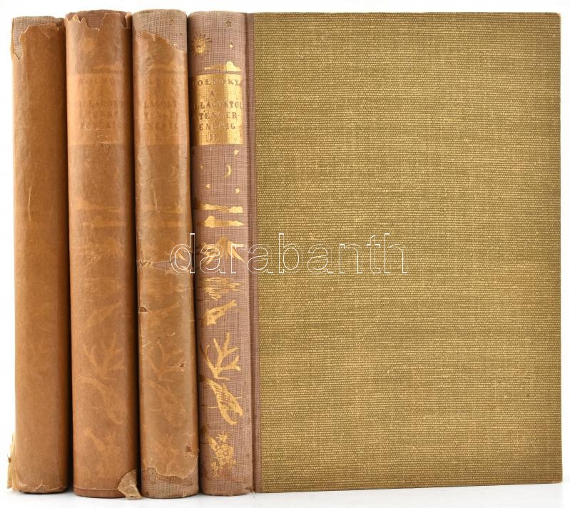 Cholnoky Jenő: A csillagoktól a tengerfenékig. I-IV. köt. I. köt. A csillagok világa. II. köt. Meteorológia. III. köt. Hegyek-völgyek. IV. köt. Szárazföldek és tengerek. Bp.,é.n.,Franklin. Szövegközti és egész oldalas képekkel gazdagon illusztrálva. Egységes, aranyozott gerincű kiadói félvászon-kötésben, kis kopásnyomokkal, a IV. kötet laza fűzéssel, kissé szakadozott papír védőborítóban, egyébként jó állapotban.