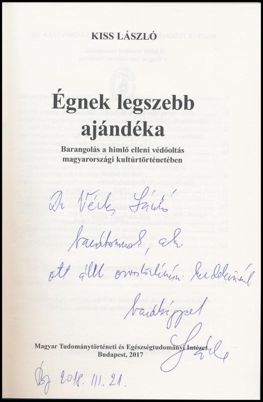 Kiss László: Égnek legszebb ajándéka. Barangolás a himlő elleni védőol... https://www.darabanth.com/en/378-Online-auction/378.0/Books/Books-Natural-sciences-Medicine~1000009/Kiss-Laszlo-Egnek-legszebb-ajandeka-Barangolas-a-himlo-elleni-vedooltas-magyarorszagi-k~II2194462