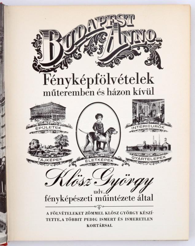 Budapest anno. Fényképfölvételek műteremben és házon kívül. Szerk.: Sivó Mária. Bp., 1981, Corvina. Vászonkötésben, kissé sérült papír védőborítóval, címlapon ajándékozási sorokkal.