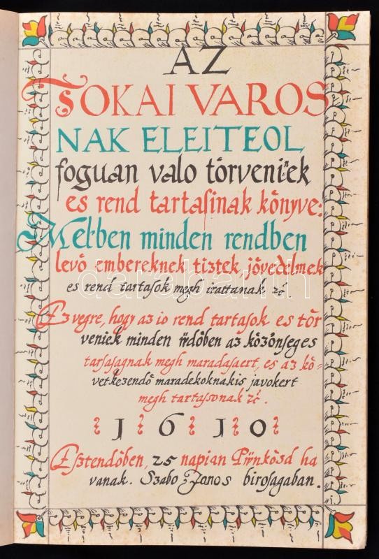 Tokaj városkönyve. Közrebocsájtja: Csorba Csaba. Sátoraljaújhely-Miskolc, 1987., Kazinczy Ferenc Társaság-Borsod-Abaúj-Zemplén Megyei Levéltár. Hasonmás kiadás. Kiadói műbőr-kötés. Megjelent 1000 példányban.