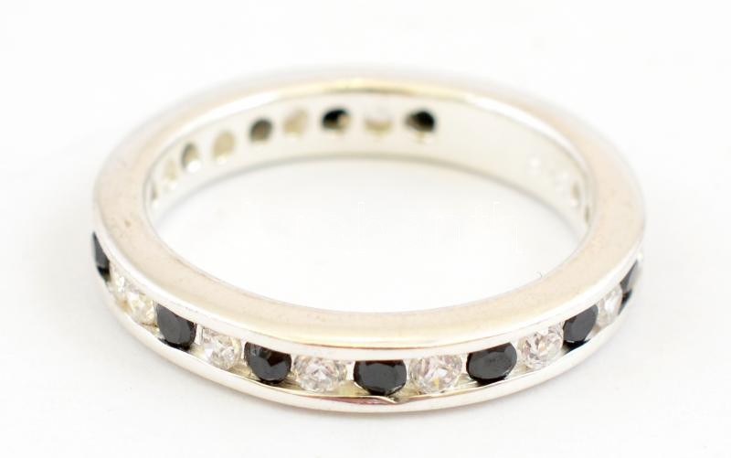 Ezüst(Ag) fekete-fehér kövekkel díszített "memory" gyűrű, jelzett, méret: 56, bruttó: 3,92 g