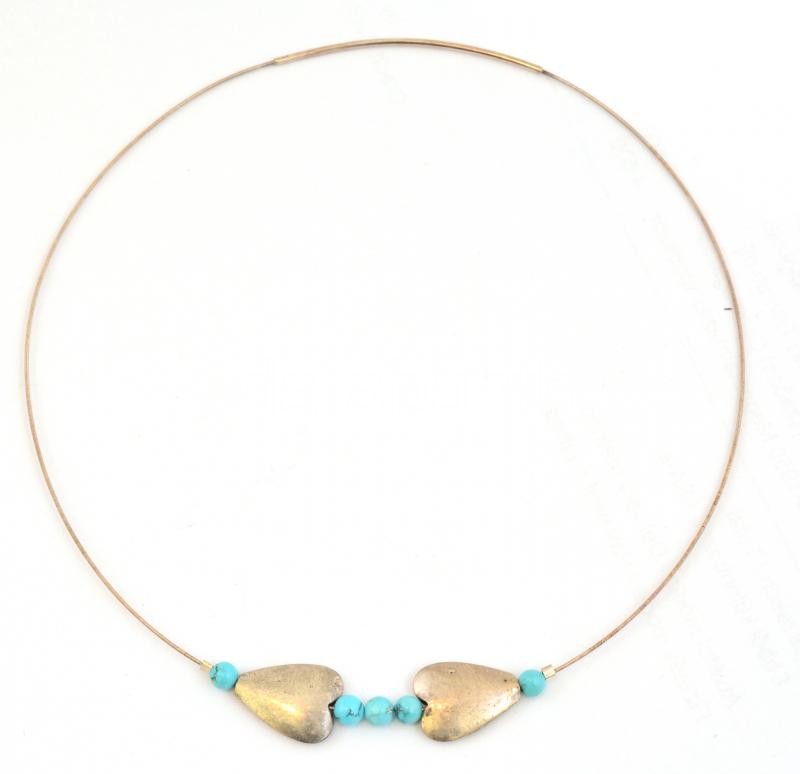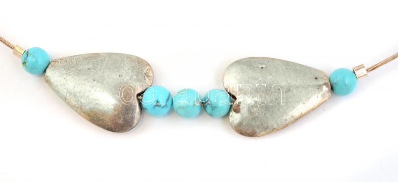 Ezüst(Ag) türkiz gyöngyökkel díszített nyakék, jelzett, bruttó: 6,4 g
