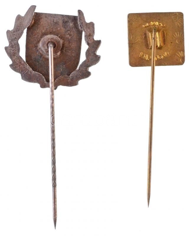 ~1970-1980. "MBSZ (Magyar Birkózó Szövetség)" zománcozott fém kitűző (12x13mm) + DN "DAU" zománcozott fém kitűző (18,5x22mm) T:1-,2
