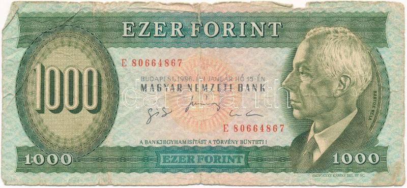 1996. 1000Ft "E" T:III- szakadás, anyaghiány Adamo F48