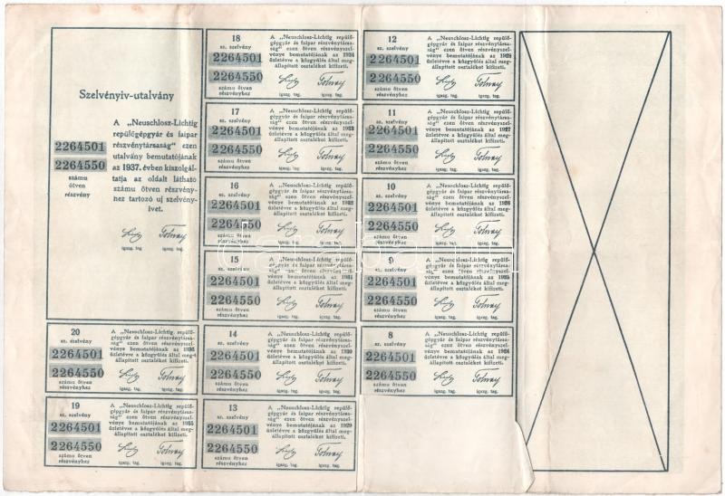 Budapest 1917. "Neuschlasz-Lichtig faipari részvénytársaság" 50db részvénye egyenként 200K-ról, kétnyelvű, szárazpecséttel, szelvényekkel T:III szakadások