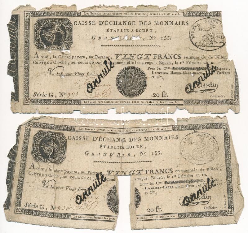 Franciaország / Rouen 1797-1803. 20Fr "annulé (érvénytelen)" felülbélyegzéssel (2x) T:IV