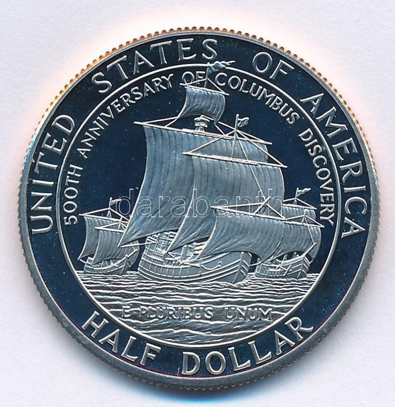 Description: Amerikai Egyesült Államok 1992S 1/2$ Cu-Ni "Kolombusz Kristóf 500. évforduló" T:PP