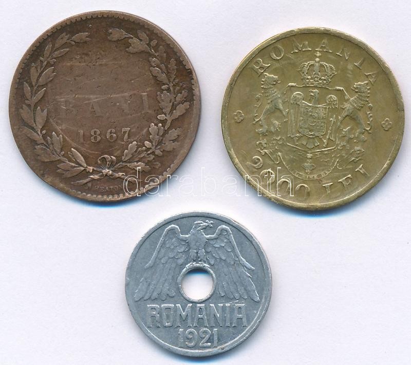 Románia 1867. 5b Cu "Heaton" + 1921. 25b Al + 1946. 2000L Br "I. Mihály" T:2-,3