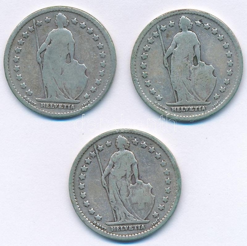 Svájc 1886B-1908B 1Fr Ag (3xklf) T:3 Switzerland 1886B-1908B 1 Franc Ag (3xdiff) C:F Krause KM#24