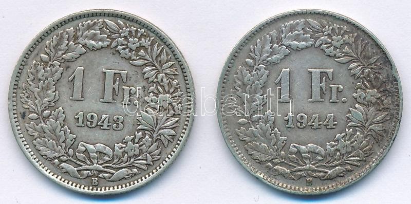 Svájc 1943B-1944B 1Fr Ag (2xklf) T:2- patina Switzerland 1943B-1944B 1...