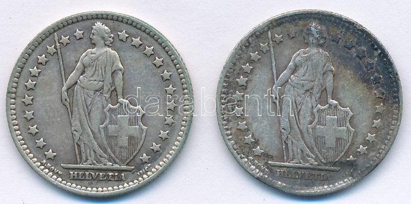 Svájc 1943B-1944B 1Fr Ag (2xklf) T:2- patina Switzerland 1943B-1944B 1 Franc Ag (2xdiff) C:VF patina Krause KM#24