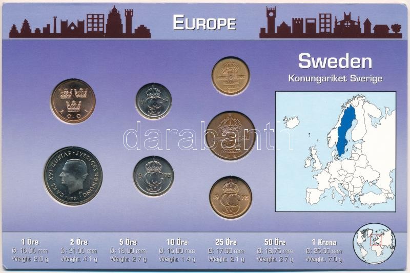 Svédország 1976-2007. 1ö - 1K (7xklf) nem hivatalos forgalmi sor karto... https://www.darabanth.com/en/378-Online-auction/378.0/Numismatics/Worldwide-silver-and-metal-coins~2000013/Svedorszag-1976-2007-1o-1K-7xklf-nem-hivatalos-forgalmi-sor-kartonlapon-az-ermek-es-az-o~II2155332
