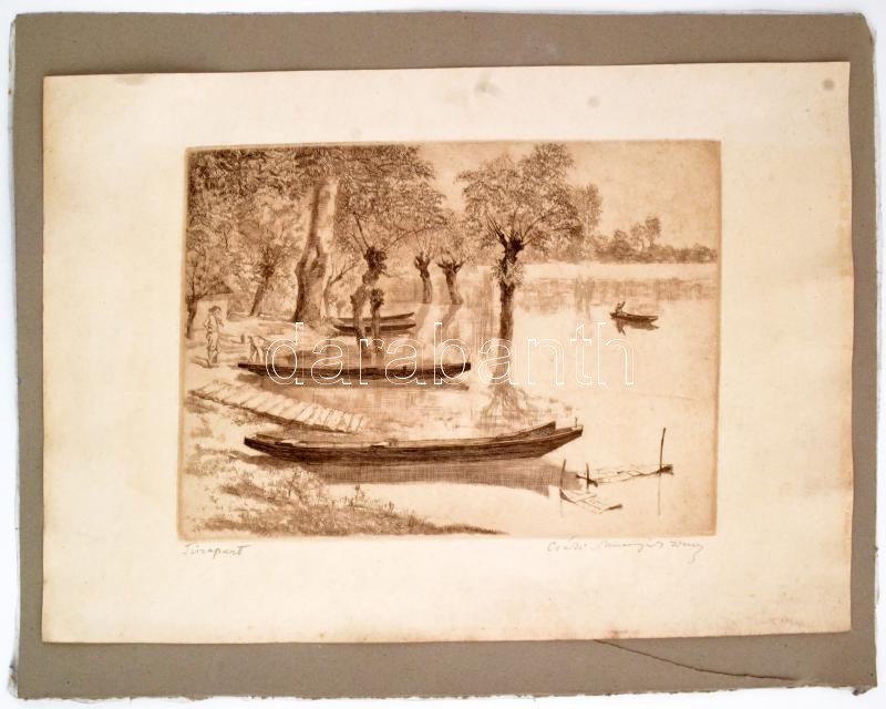 Csáki-Maronyák József (1910-2002): Tisza part. rézkarc, papír, jelzet...