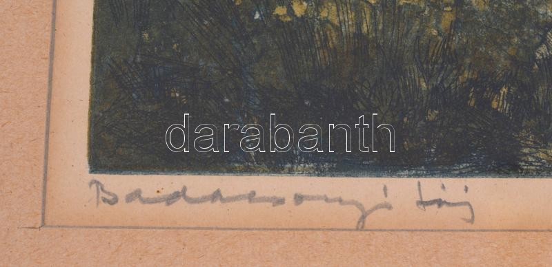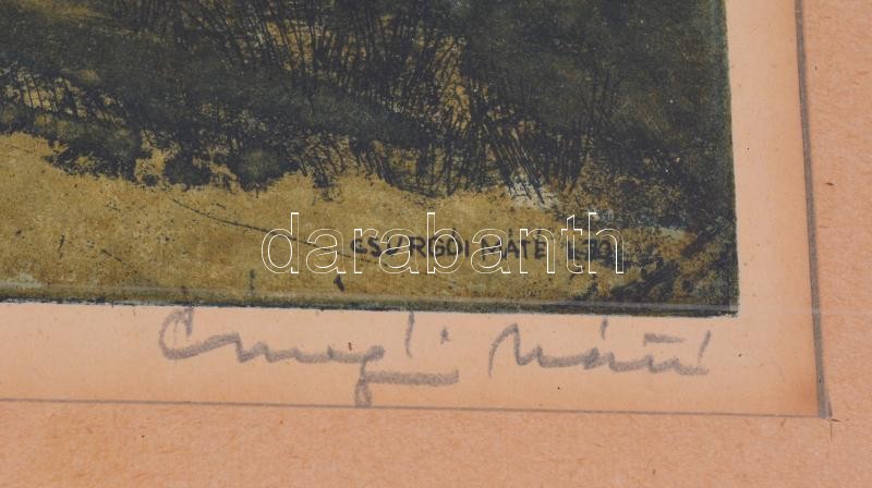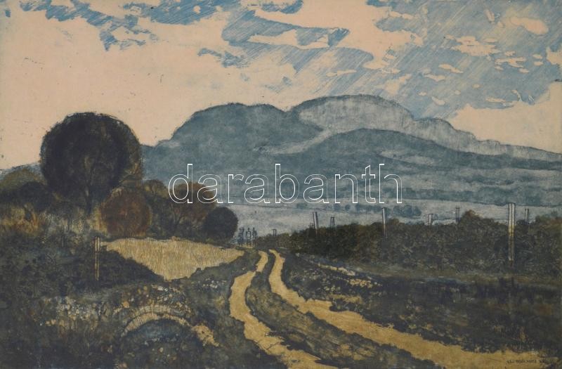 Csurgói Máté Lajos (1931-2001): Badacsonyi táj, színes rézkarc, papír,...