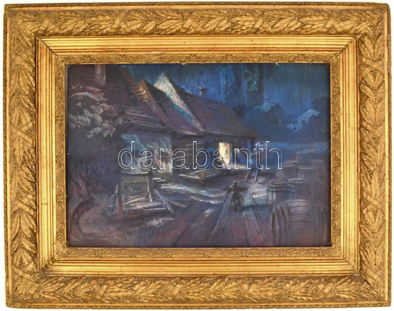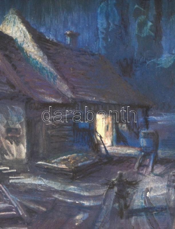 Koleszár György (?-?): Pálinkafőzés, Zala. Olaj, farost, jelzett. Díszes, reprezentatív fa keretben, 45×62 cm