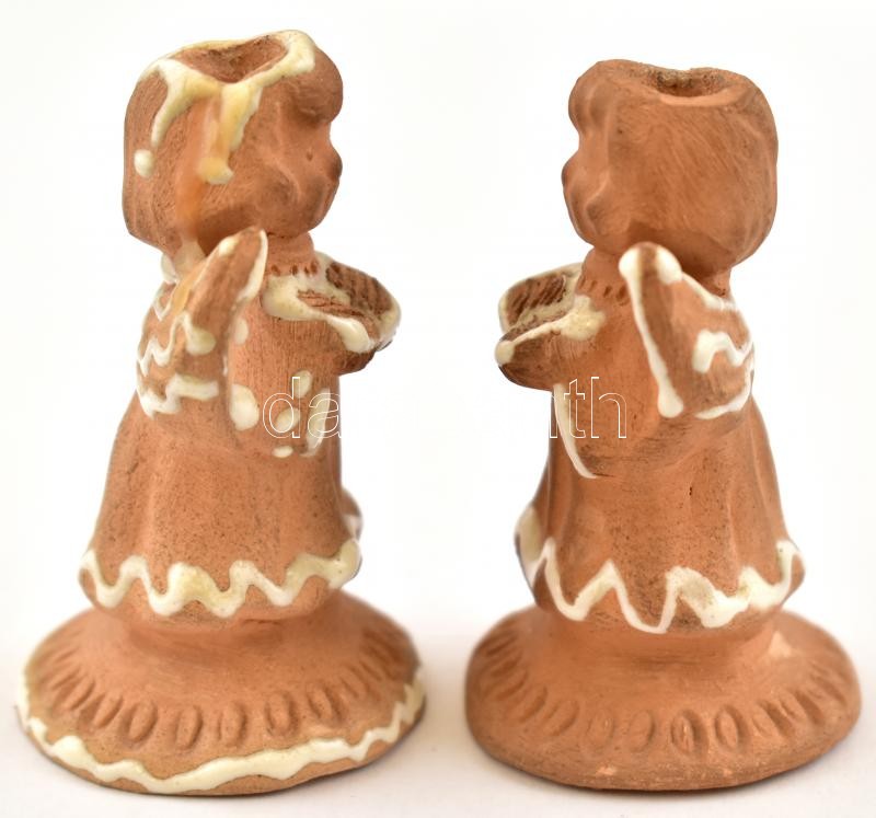 2 db angyalkás kerámia gyertyatartó, jelzés nélkül, kis kopásnyomokkal, m: 5,5 cm