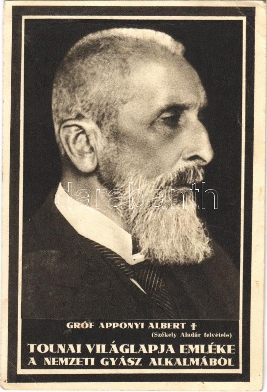 Gróf Apponyi Albert gyászlapja. Tolnai Világlapja emléke a nemzeti gyász alkalmából. Székely Aladár felvétele / obituary card of Albert Apponyi (EB)