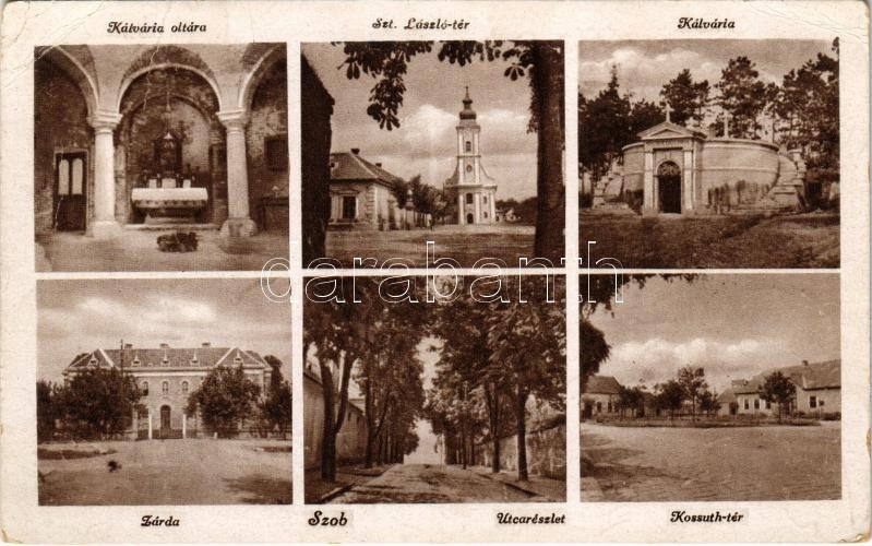 1949 Szob, Kálvária oltára, Szent László tér, zárda, Kossuth tér, utca...