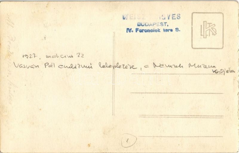 Description: Dr. Prohászka Ottokár utolsó nyilvános szereplése, a Vasvári Pál emlékmű leleplezésekor a Nemzeti Múzeum kertjében 1927. március 28-án. Weisz Frigyes photo