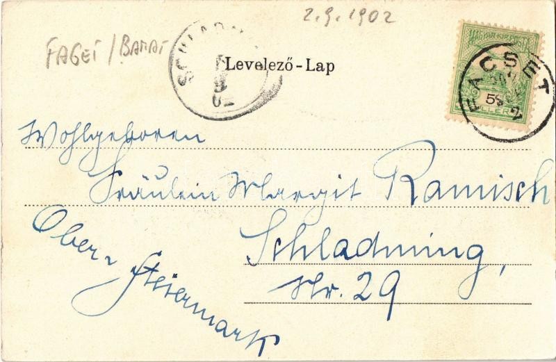 1902 Facset, Facsád, Faget; indóház, vasútállomás, Magyar király szálloda, Klein Dávid áruháza, üzlet / railway station, hotel, shops. Art Nouveau, floral
