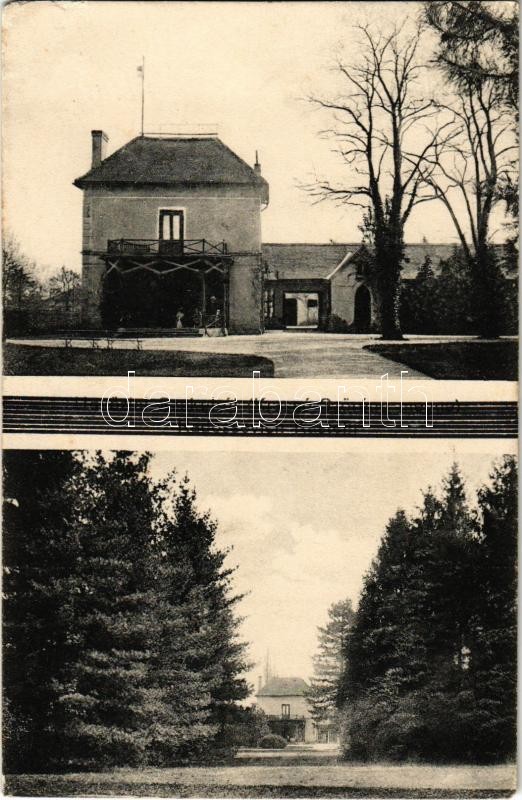 Description: 1915 Szákul, Sacu; Báró Radossevich kastély és a kastélypark. Rajta Radossevich levele és aláírása / Radossevich Kastell / castle, park. Letter and signature of Radossevich on the backside (EK)