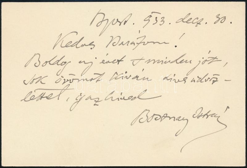 https://www.darabanth.com/en/379-Online-auction/379.0/Art-and-other-collectibles/Autographs~500019/1933-Bosznay-Istvan-1868-1944-sajat-kezu-udvozlo-sorai-kartyan~II2163391