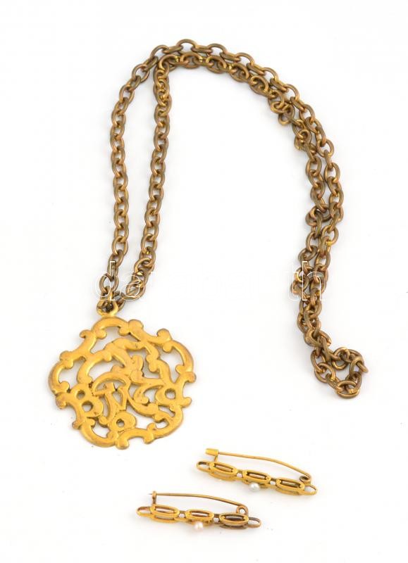 Aranyszínű bizsu lánc, h: 31 cm + aranyszínű bizsu biztostű (2db), 3,5...