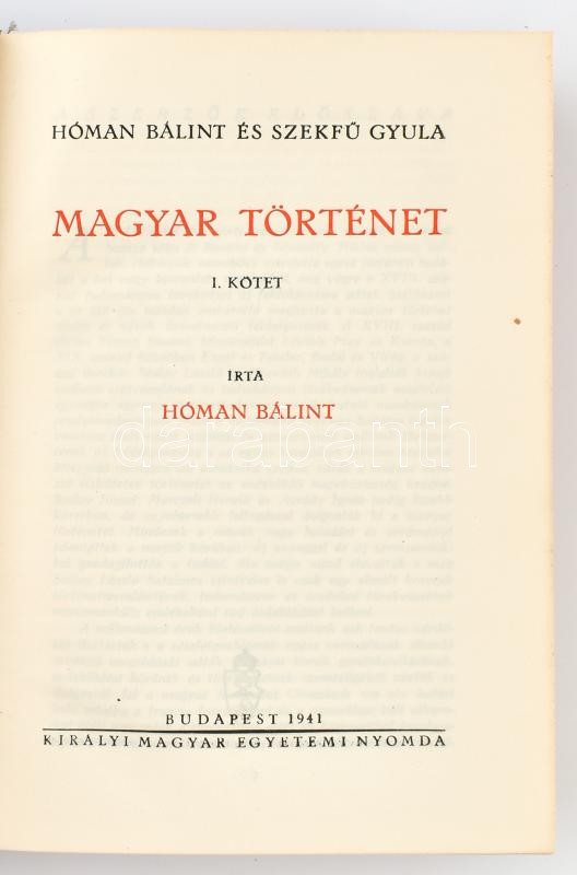 Hóman Bálint-Szekfű Gyula: Magyar történet. I-V. köt. Bp., 1941-1943, ... https://www.darabanth.com/en/379-Online-auction/379.0/Books/Books-History~1000004/Homan-Balint-Szekfu-Gyula-Magyar-tortenet-I-V-kot-Bp-1941-1943-Kir-M-Egyetemi-Nyomda~II2209538