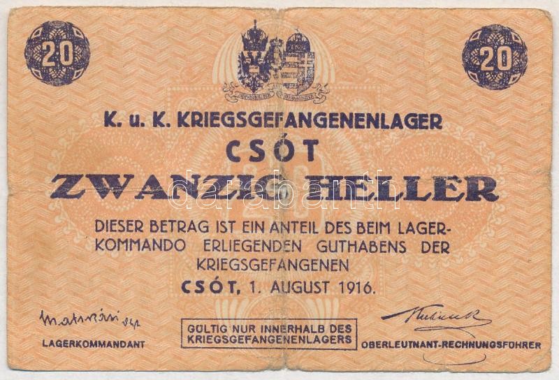 https://www.darabanth.com/en/379-Online-auction/379.0/Numismatics/Emergency-Coins-and-Notes~2000006/Csot-Hadifogolytabor-1916-augusztus-1-20f-szamozas-nelkul-alairassal-TIII-hajtas-me~II2237391