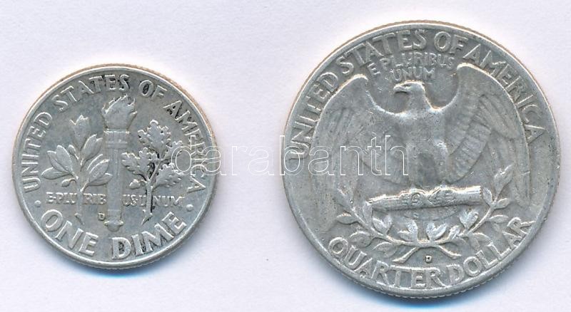 Description: Amerikai Egyesült Államok 1962D 1d Ag "Roosevelt" + 1962D 1/4$ Ag "Washington" T:2-